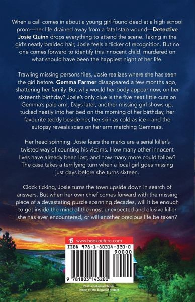 "When a call comes in about a young girl found dead at a high school prom--her life drained away from a fatal stab wound--Detective Josie Quinn drops everything to attend the scene. Taking in the girl's neatly braided hair, Josie feels a flicker of recognition. But no one comes forward to identify this innocent child, murdered on what should have been the happiest night of her life. Trawling missing persons files, Josie realizes where she has seen the girl before. Gemma Farmer disappeared a few months ago, shattering her family. But why would her body appear now, on her sixteenth birthday? Josie's only clue is the five neat little cuts on Gemma's pale arm. Days later, another missing girl shows up, tucked neatly into her bed on the morning of her birthday, her favourite teddy beside her, her skin as cold as ice--and the autopsy reveals scars on her arm matching Gemma's. Her head spinning, Josie fears the marks are a serial killer's twisted way of counting his victims. But where are the other girls he's killed, and how many more could follow? The case takes a terrifying turn when a local teen goes missing just days before she turns sixteen." -- Back cover