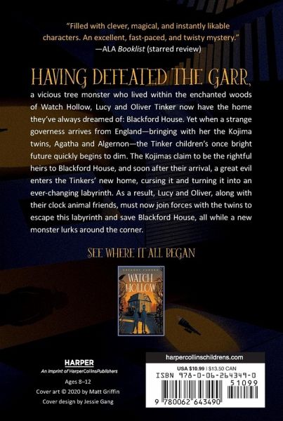 ?There is magic, there is good and evil, and there is love all woven into a suspenseful and entertaining mystery.??School Library Journal (starred review) New York Times bestselling author Gregory Funaro brings us the second installment of the thrilling Watch Hollow series, where magic exists, monsters roam, and wooden animals come to life. Having defeated the Garr, a vicious tree monster who lived within the enchanted woods of Watch Hollow, Lucy and Oliver Tinker now have the home they've always dreamed of: Blackford House. Powered by a magical clock and full of curious rooms and improbable knickknacks, Blackford House brims with the promise of new adventures. Yet when a strange governess arrives from England?bringing with her the Kojima twins, Agatha and Algernon?the Tinker children's once bright future quickly begins to dim. The Kojimas claim to be the rightful heirs to Blackford House, and soon after their arrival, a great evil enters the Tinkers' new home, cursing it and turning it into an ever-changing labyrinth. As a result, Lucy and Oliver, along with their clock animal friends, must now join forces with the twins to escape this labyrinth and save Blackford House, all while a new monster lurks around the corner.