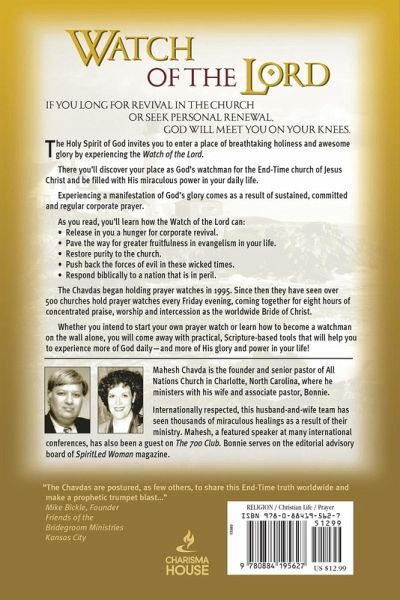 If you long for revival in the church or seek personal renewal, God will meet you on your knees. The Holy Spirit of God invites you to enter a place of breathtaking holiness and awesome glory by experiencing the Watch of the Lord. There you'll discover your place as God's watchman for the End-Time church of Jesus Christ and be filled with His miraculous power in your daily life. Experiencing a manifestation of God's glory comes as a result of sustained, committed and regular corporate prayer. As you read, you will learn how the Watch of the Lord can: -Release in you a hunger for corporate revival -Pave the way for greater fruitfulness in evangelism in your life -Restore purity to the church -Push back the forces of evil in these wicked times -Respond biblically to a nation that is in perilWhether you intend to start your own prayer watch, or learn how to become a watchman on the wall alone, you will come away with practical, Scripture-based tools that will help you to experience more of God daily-and more of His glory and power in your life!