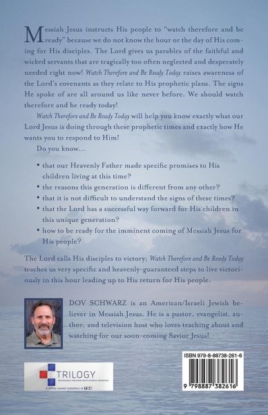 Messiah Jesus instructs His people to "watch therefore and be ready" because we do not know the hour or the day of His coming for His disciples. The Lord gives us parables of the faithful and wicked servants that are tragically too often neglected and desperately needed right now! Watch Therefore and Be Ready Today raises awareness of the Lord's covenants as they relate to His prophetic plans. The signs He spoke of are all around us like never before. We should watch therefore and be ready today! Watch Therefore and Be Ready Today will help you know exactly what our Lord Jesus is doing through these prophetic times and exactly how He wants you to respond to Him! Do you know... that our Heavenly Father made specific promises to His children living at this time? the reasons this generation is different from any other? that it is not difficult to understand the signs of these times? that the Lord has a successful way forward for His children in this unique generation? how to be ready for the imminent coming of Messiah Jesus for His people? The Lord calls His disciples to victory; Watch Therefore and Be Ready Today teaches us very specific and heavenly-guaranteed steps to live victoriously in this hour leading up to His return for His people.