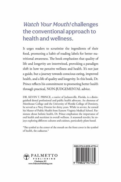 Unlock Better Health: Challenge Your Food Choices! Discover the Impact of Ingredients on Your Wellness, Learn to Read Labels, and Embrace a Life of Quality and Longevity. In Watch Your Mouth!, a new perspective on health and wellness is presented to the reader. This book goes beyond the typical diet plans and calorie counting, encouraging a deeper understanding of what we consume. It challenges you to scrutinize the ingredients in your food, many of which are unpronounceable and unknown to the average consumer. By reducing the intake of these complex ingredients, you can significantly improve your health outcomes. Watch Your Mouth! also promotes the habit of reading food labels, a practice that can enhance your knowledge of the nutritional value of your daily meals. It's not just about longevity, but the quality of life that comes with it. The book poses a thought-provoking question: What good is a long life if it's devoid of quality? It asserts that both longevity and quality of life are intertwined, and one cannot truly appreciate life without both. This book is not just a guide, but a challenge. It dares you to redefine your understanding of health and wellness, to shift your paradigm and change the way you interact with food. It's not about following a strict diet or losing weight, but about making informed choices that lead to a healthier, happier, and longer life. Watch Your Mouth! is more than a book; it's a journey towards better health, happiness, and wellness. It's an invitation to take control of your health, to make conscious decisions about what you consume, and to live a life of quality and longevity. Embrace this challenge and unlock the path to better health.