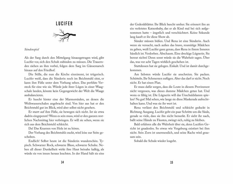 Jugendthriller mit erschreckend realistischen Szenario: Rena wird in ein gefährliches Spiel um die sieben Todsünden verwickelt, das ihr Leben und das ihrer Liebsten bedroht. Perfide und spannende Handlung: Rena erhält Aufgaben von einem Unbekannten, die sie zu erfüllen hat, um Schlimmeres zu verhindern - ein Wettlauf gegen die Zeit beginnt. Tiefgründige Charakterentwicklung: Die innere Zerrissenheit und die komplexe Psyche der Protagonistin Rena werden detailreich und nachvollziehbar dargestellt. Netz aus Lügen und Geheimnissen: Die Verknüpfung von Renas Vergangenheit mit dem Tod ihres Freundes Joe und dem unbekannten Antagonisten "Luzifer" hält die Spannung bis zum Schluss. Neben packender Unterhaltung regt das Buch zum Nachdenken über Schuld, Sühne und die Folgen unserer Handlungen an. Die Auflösung des Thrillers bleibt bis zum Schluss ungewiss und garantiert ein fesselndes Leseerlebnis. Hoch gelobt von Kritikern und Lesern: Mit positiven Rezensionen und Empfehlungen für Fans von Jugendthrillern und Highschool-Dramen.