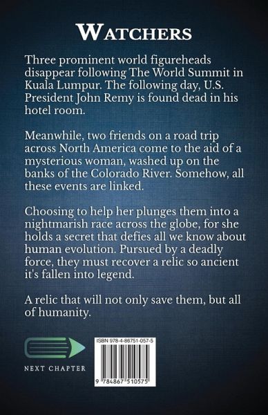 Three prominent world figureheads disappear following The World Summit in Kuala Lumpur. The following day, U.S. President John Remy is found dead in his hotel room. Meanwhile, two friends on a road trip across North America come to the aid of a mysterious woman, washed up on the banks of the Colorado River. Somehow, all these events are linked. Choosing to help her plunges them into a nightmarish race across the globe, for she holds a secret that defies all we know about human evolution. Pursued by a deadly force, they must recover a relic so ancient it's fallen into legend. A relic that will not only save them, but all of humanity.