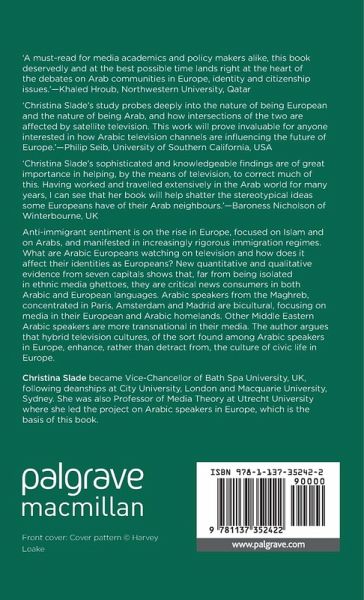 "Challenging long-held perceptions about the assumed exclusionary impact of Arabic TV broadcasting within Europe, Slade debunks this notion impressively with nuanced theoretical argumentation, empirical data and field research in six European countries. A must-read for media academics and policy makers alike, this book deservedly and at the best possible time lands right at the heart of the debates on Arab communities in Europe, identity and citizenship issues.' - Khaled Hroub, Northwestern University, Qatar