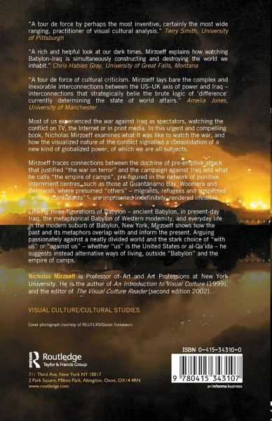 Groundbreaking and compelling, Watching Babylon examines the experience of watching the war against Iraq on television, on the internet, in the cinema and in print media. Mirzoeff shows how the endless stream of images flowing from the Gulf has necessitated a new form of visual thinking, one which recognises that the war has turned images themselves into weapons. Drawing connections between the history and legend of ancient Babylon, the metaphorical Babylon of Western modernity, and everyday life in the modern suburb of Babylon, New York, Mirzoeff explores ancient concerns which have found new resonance in the present day. In the tradition of Walter Benjamin, Watching Babylon illuminates the Western experience of the Iraqi war and makes us re-examine the very way we look at images of conflict.