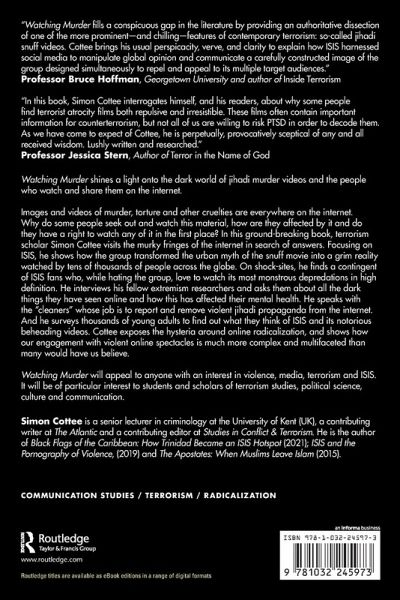 "Watching Murder fills a conspicuous gap in the literature by providing an authoritative dissection of one of the more prominent-and chilling-features of contemporary terrorism: so-called jihadi snuff videos. Cottee brings his usual perspicacity, verve, and clarity to explain how ISIS harnessed social media to manipulate global opinion and communicate a carefully constructed image of the group designed simultaneously to repel and appeal to its multiple target audiences." - Professor Bruce Hoffman, Georgetown University and author of Inside Terrorism