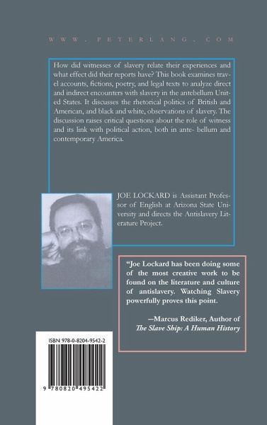 «Joe Lockard has been doing some of the most creative work to be found on the literature and culture of antislavery. 'Watching Slavery' powerfully proves this point.» (Marcus Rediker, Author of 'The Slave Ship: A Human History')