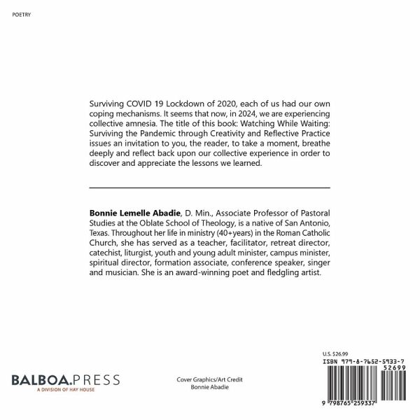Surviving COVID 19 Lockdown of 2020, each of us had our own coping mechanisms. It seems that now, in 2024, we are experiencing collective amnesia. The title of this book: Watching While Waiting: Surviving the Pandemic through Creativity and Refl ective Practice issues an invitation to you, the reader, to take a moment, breathe deeply and refl ect back upon our collective experience in order to discover and appreciate the lessons we learned.