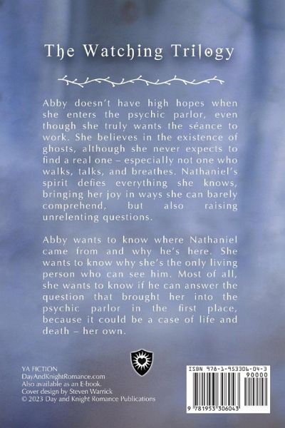 Abby doesn't have high hopes when she enters the psychic parlor, even though she truly wants the séance to work. She believes in the existence of ghosts, although she never expects to find a real one - especially not one who walks, talks, and breathes. Nathaniel's spirit defies everything she knows, bringing her joy in ways she can barely comprehend, but also raising unrelenting questions. Abby wants to know where Nathaniel came from and why he's here. She wants to know why she's the only living person who can see him. Most of all, she wants to know if he can answer the question that brought her into the psychic parlor in the first place, because it could be a case of life and death - her own.