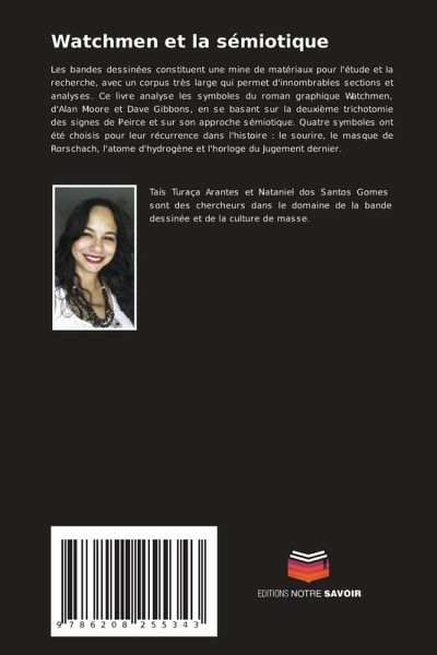 Les bandes dessinées constituent une mine de matériaux pour l'étude et la recherche, avec un corpus très large qui permet d'innombrables sections et analyses. Ce livre analyse les symboles du roman graphique Watchmen, d'Alan Moore et Dave Gibbons, en se basant sur la deuxième trichotomie des signes de Peirce et sur son approche sémiotique. Quatre symboles ont été choisis pour leur récurrence dans l'histoire : le sourire, le masque de Rorschach, l'atome d'hydrogène et l'horloge du Jugement dernier.