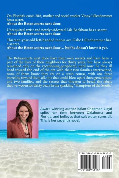 On Florida's iconic 30A, mother and social worker Vinny Lillenhammer has a secret. About the Betancourts next door. Unrequited artist and newly widowed Lila Beckham has a secret. About the Betancourts next door. Thirteen-year-old left-handed tennis ace Gabe Lillenhammer has a secret. About the Betancourts next door... but he doesn't know it yet. The Betancourts next door have their own secrets and have been a part of the lives of their neighbors for thirty years, but have always remained only on the vacationing peripheral, until now. As they all head toward the end of the era with their two families intertwined, none of them know they are on a crash course, with one force barreling toward them all, one that could blow apart three generations and two families, and the secrets that threaten to break the fabric they've woven for thirty years in the sparkling "Hamptons of the South."