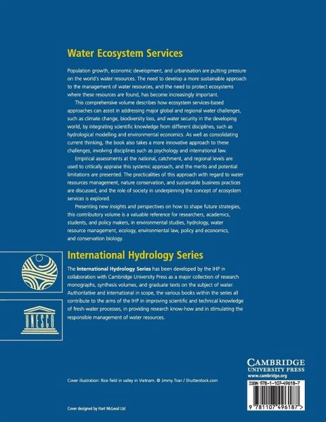 This comprehensive volume describes how ecosystem services-based approaches can assist in addressing major global and regional water challenges, such as climate change, biodiversity loss, and water security in the developing world, by integrating scientific knowledge from different disciplines, such as hydrological modelling, environmental economics, psychology and international law. Empirical assessments at the national, catchment and regional levels are used to critically appraise this systemic approach, and the merits and potential limitations are presented. The practicalities of this approach with regard to water resources management, nature conservation, and sustainable business practices are discussed, and the role of society in underpinning the concept of ecosystem services is explored. Presenting new insights and perspectives on how to shape future strategies, this contributory volume is a valuable reference for researchers, academics, students and policy makers, in environmental studies, hydrology, water resource management, ecology, environmental law, policy and economics, and conservation biology.