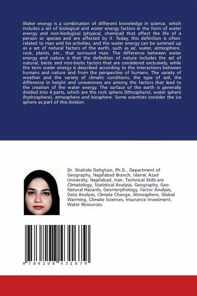 Water energy is a combination of different knowledge in science, which includes a set of biological and water energy factors in the form of water energy and non-biological (physical, chemical) that affect the life of a person or species and are affected by it. Today, this definition is often related to man and his activities, and the water energy can be summed up as a set of natural factors of the earth, such as air, water, atmosphere, rock, plants, etc., that surround man. The difference between water energy and nature is that the definition of nature includes the set of natural, biotic and non-biotic factors that are considered exclusively, while the term water energy is described according to the interactions between humans and nature and from the perspective of humans. The variety of weather and the variety of climatic conditions, the type of soil, the difference in height and unevenness are among the factors that lead to the creation of the water energy. The surface of the earth is generally divided into 4 parts, which are the rock sphere (lithosphere), water sphere (hydrosphere), atmosphere and biosphere. Some scientists consider the ice sphere as part of this division.