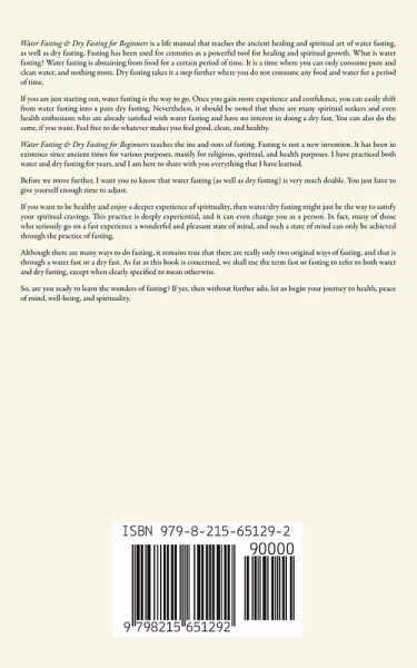 Water Fasting & Dry Fasting for Beginners is a life manual that teaches the ancient healing and spiritual art of water fasting, as well as dry fasting. Fasting has been used for centuries as a powerful tool for healing and spiritual growth. What is water fasting? Water fasting is abstaining from food for a certain period of time. It is a time where you can only consume pure and clean water, and nothing more. Dry fasting takes it a step further where you do not consume any food and water for a period of time. If you are just starting out, water fasting is the way to go. Once you gain more experience and confidence, you can easily shift from water fasting into a pure dry fasting. Nevertheless, it should be noted that there are many spiritual seekers and even health enthusiasts who are already satisfied with water fasting and have no interest in doing a dry fast. You can also do the same, if you want. Feel free to do whatever makes you feel good, clean, and healthy. Water Fasting & Dry Fasting for Beginners teaches the ins and outs of fasting. Fasting is not a new invention. It has been in existence since ancient times for various purposes, mainly for religious, spiritual, and health purposes. I have practiced both water and dry fasting for years, and I am here to share with you everything that I have learned. Before we move further, I want you to know that water fasting (as well as dry fasting) is very much doable. You just have to give yourself enough time to adjust. If you want to be healthy and enjoy a deeper experience of spirituality, then water/dry fasting might just be the way to satisfy your spiritual cravings. This practice is deeply experiential, and it can even change you as a person. In fact, many of those who seriously go on a fast experience a wonderful and pleasant state of mind, and such a state of mind can only be achieved through the practice of fasting. Although there are many ways to do fasting, it remains true that there are really only two original ways of fasting, and that is through a water fast or a dry fast. As far as this book is concerned, we shall use the term fast or fasting to refer to both water and dry fasting, except when clearly specified to mean otherwise. So, are you ready to learn the wonders of fasting? If yes, then without further ado, let us begin your journey to health, peace of mind, well-being, and spirituality.