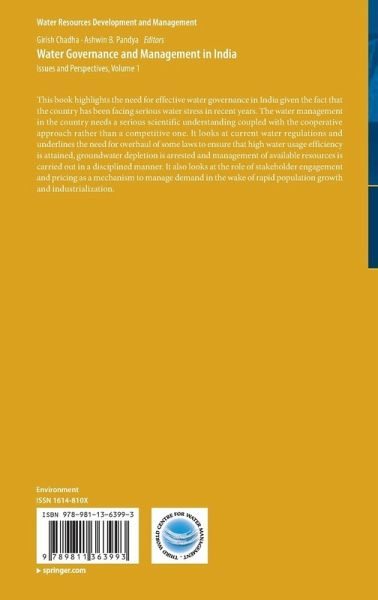 This book highlights the need for effective water governance in India given the fact that the country has been facing serious water stress in recent years. The water management in the country needs a serious scientific understanding coupled with the cooperative approach rather than a competitive one. It looks at current water regulations and underlines the need for overhaul of some laws to ensure that high water usage efficiency is attained, groundwater depletion is arrested and management of available resources is carried out in a disciplined manner. It also looks at the role of stakeholder engagement and pricing as a mechanism to manage demand in the wake of rapid population growth and industrialization.