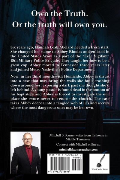 Six years ago, Hannah Leah Abelard needed a fresh start. She changed her name to Abbey Rhodes and enlisted in the United States Army as a part of the "Ever Vigilant," 18th Military Police Brigade. They taught her how to be a great cop. Abbey moved to Tennessee three years later and joined Metro Nashville's Police Department. Now, in her third month with Homicide, Abbey is thrust into a case that may bring the walls she built crashing down around her, exposing a dark past she thought she'd left behind. A young pastor is found dead in the bottom of his baptistery and Abbey is forced to investigate the one place she swore never to return-the church. The case takes Abbey deeper into a tangled web of lies and secrets where the most dangerous ones may be her own.