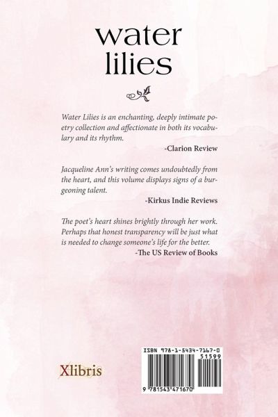 Water Lilies is a collection of poetry that represents a decade in time. It is comprised of a multitude of themes-love to loss, passion to pain, suffering to healing, and life as a whole. This poetry book is inspired by the experiences of loved ones and of oneself; bound into book, these words from within will solicit readers to be courageous in their understanding of the poet's journey. Offering an authenticity to the world around us, Water Lilies chooses to showcase the beauty of truth in its natural state and the necessity of undergoing distinctive emotions in order to appreciate the gift of life and to recognize each moment in life as a gift itself.