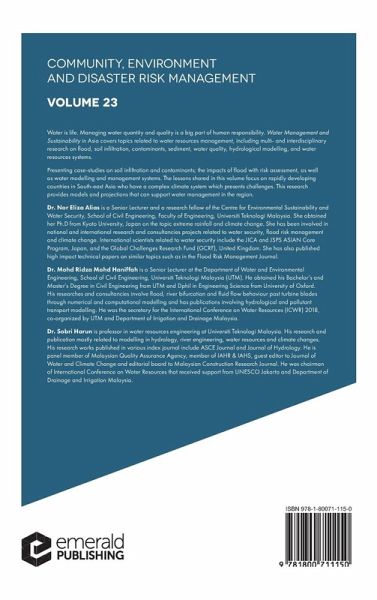 Nor Eliza Alias is a Senior Lecturer and Research Fellow of the Centre for Environmental Sustainability and Water Security, School of Civil Engineering, Faculty of Engineering, Universiti Teknologi Malaysia. Mohd Ridza Mohd Haniffah is a Lecturer at the Department of Water and Environmental Engineering, School of Civil Engineering, Universiti Teknologi Malaysia (UTM) and obtained Bachelor's and Master's Degrees in Civil Engineering from UTM and Dphil in Engineering Science from Oxford University. Sobri Harun is Professor in Water Resources Engineering at Universiti Teknologi Malaysia, a panel member of Malaysian Quality Assurance Agency, member of IAHR and IAHS, guest editor of Journal of Water and Climate Change and an editorial board member for Malaysian Construction Research Journal.