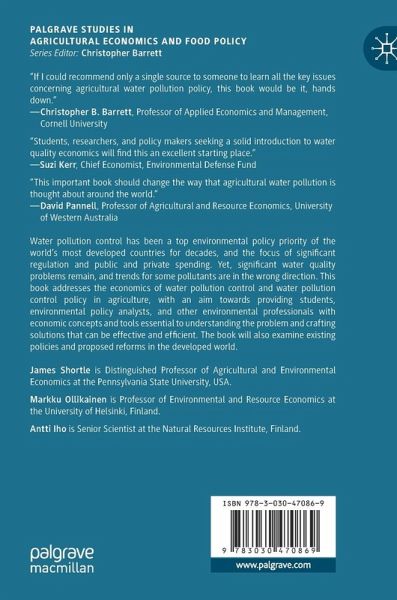 Water pollution control has been a top environmental policy priority of the world's most developed countries for decades, and the focus of significant regulation and public and private spending. Yet, significant water quality problems remain, and trends for some pollutants are in the wrong direction. This book addresses the economics of water pollution control and water pollution control policy in agriculture, with an aim towards providing students, environmental policy analysts, and other environmental professionals with economic concepts and tools essential to understanding the problem and crafting solutions that can be effective and efficient. The book will also examine existing policies and proposed reforms in the developed world. Although this book addresses and has a general applicability to major water pollutants from agriculture (e.g., pesticides, pharmaceuticals, sediments, nutrients), it will focus on the sediment and nutrient pollution problem. The economic and scientific foundations for pollution management are best developed for these pollutants, and they are currently the top priorities of policy makers. Accordingly, the authors provide both highly salient and informative cases for developing concepts and methods of general applicability, with high profile examples such as the Chesapeake Bay, Lake Erie, and the Gulf of Mexico Dead Zone in the US; the Baltic Sea in Northern Europe; and Lake Taupo in New Zealand.
