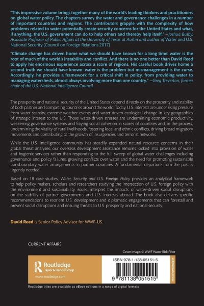 The prosperity and national security of the United States depend directly on the prosperity and stability of both partner and competing countries around the world. Today, U.S. interests are under rising pressure from water scarcity, extreme weather events and water-driven ecological change in key geographies of strategic interest to the U.S. Those water-driven stresses are undermining economic productivity, weakening governance systems and fraying social cohesion in scores of countries and, in the process, undermining the vitality of rural livelihoods, fostering local and ethnic conflicts, driving broad migratory movements and contributing to the growth of insurgencies and terrorist networks. While the U.S. intelligence community has steadily expanded natural resource concerns in their global threat analyses, our overseas development assistance remains locked into provision of water and hygienic services rather than responding to the full sweep of global water challenges including governance and policy failures, growing conflicts over water and the need for promoting sustainable transboundary water arrangements in partner countries. A fundamental departure from the past is urgently needed. Based on 18 case studies, Water, Security and U.S. Foreign Policy provides an analytical framework to help policy makers, scholars and researchers studying the intersection of U.S. foreign policy with the environment and sustainability issues, interpret the impacts of water-driven social disruptions on the stability of partner governments and U.S. interests abroad. The book also delivers specific recommendations to reorient U.S. development and diplomatic engagements that can forestall and prevent social disruptions and ensuing threats to U.S. prosperity and national security.