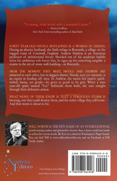 Forty year-old Nicola Rhys-Jones is a woman in hiding. Fleeing an abusive husband, she finds refuge in Boscastle, a village on the rugged coast of Cornwall, England. Andrew Stratton is an American professor of architectural theory. Shocked out of his academic bubble when his ambitious wife leaves him, he signs up for something tangible: a course in the art of stone wall-building-in Boscastle. From the moment they meet, Nicola and Andrew are attracted to each other, but at daggers drawn. Nicola, sexy yet sarcastic, is an expert at fending off men. In Andrew, she meets her match: quick-witted, funny, yet gentle-he gives as good as he gets. When a nine year-old sprite named "Lee" befriends them both, she sees straight through their defensive armor. What none of them know is that a ferocious storm is brewing, one that could destroy them, and the entire village they call home. And that storm is about to hit.