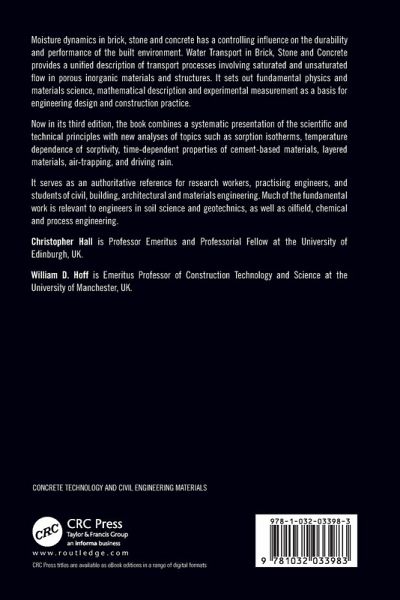 Moisture dynamics in brick, stone and concrete has a controlling influence on the durability and performance of the built environment. Water Transport in Brick, Stone and Concrete provides a unified description of transport processes involving saturated and unsaturated flow in porous inorganic materials and structures. It sets out fundamental physics and materials science, mathematical description and experimental measurement as a basis for engineering design and construction practice.