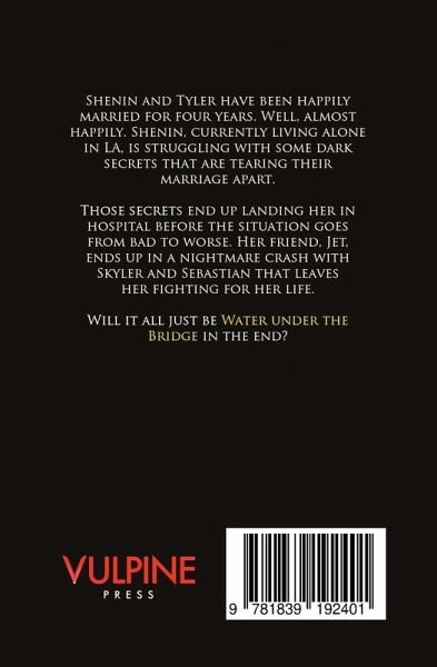Shenin and Tyler have been happily married for four years. Well, almost happily. Shenin, currently living alone in LA, is struggling with some dark secrets that are tearing their marriage apart. Those secrets end up landing her in hospital before the situation goes from bad to worse. Her friend, Jet, ends up in a nightmare crash with Skyler and Sebastian that leaves her fighting for her life. Will it all just be Water under the Bridge in the end?