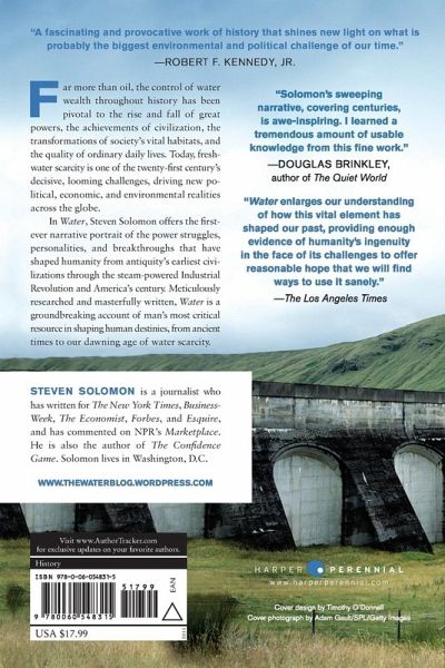 Far more than oil, the control of water wealth throughout history has been pivotal to the rise and fall of great powers, the achievements of civilization, the transformations of society's vital habitats, and the quality of ordinary daily lives. Today, freshwater scarcity is one of the twenty-first century's decisive, looming challenges, driving new political, economic, and environmental realities across the globe. In Water, Steven Solomon offers the first-ever narrative portrait of the power struggles, personalities, and breakthroughs that have shaped humanity from antiquity's earliest civilizations through the steam-powered Industrial Revolution and America's century. Meticulously researched and masterfully written, Water is a groundbreaking account of man's most critical resource in shaping human destinies, from ancient times to our dawning age of water scarcity.