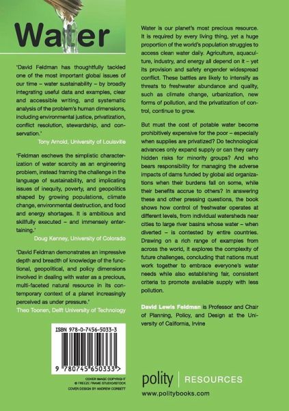 "David Feldman has thoughtfully tackled one of the most important global issues of our time - water sustainability - by broadly integrating useful data and examples, clear and accessible writing, and systematic analysis of the problem's human dimensions, including environmental justice, privatization, conflict resolution, stewardship, and conservation."