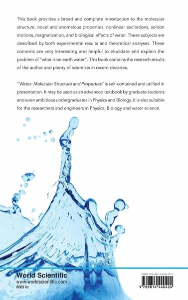 This book provides a broad and complete introductions to the molecular structure, novel and anomalous properties, nonlinear excitations, soliton motions, magnetization, and biological effects of water. These subjects are described by both experimental results and theoretical analyses. These contents are very interesting and helpful to elucidate and explain the problem of "what is on earth water." This book contains the research results of the author and plenty of scientists in recent decades. "Water: Molecular Structure and Properties" is self-contained and unified in presentation. It may be used as an advanced textbook by graduate students and even ambitious undergraduates in Physics and Biology. It is also suitable for the researchers and engineers in Physics, Biology and water science.