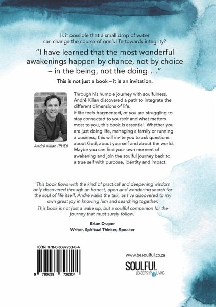 Through his humble journey with soulfulness, André Kilian discovered a path to integrate the different dimensions of life. If life feels fragmented, or you are struggling to stay connected to yourself and what matters most to you, this book is essential. Whether you are just doing life, managing a family or running a business, this will invite you to ask questions about God, about yourself and about the world. Maybe you can find your own moment of awakening and join the soulful journey back to a true self with purpose, identity and impact.