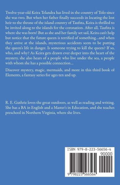 Twelve-year-old Keira Telandra has lived in the country of Tolo since she was two. But when her father finally succeeds in locating the lost heir to the throne of the island country of Taufsta, Keira is thrilled to be invited along to the islands for the coronation. After all, Taufsta is where she was born! But as she and her family set sail, Keira can't help but notice that the future queen is terrified of something…and when they arrive at the islands, mysterious accidents seem to be putting the queen's life in danger. Is someone trying to kill the queen? If so, who, and why? As Keira gets drawn ever deeper into the heart of the mystery, she also hears of a people who live under the sea, a people with whom she has a possible connection… Discover mystery, magic, mermaids, and more in this third book of Elements, a fantasy series for ages ten and up.