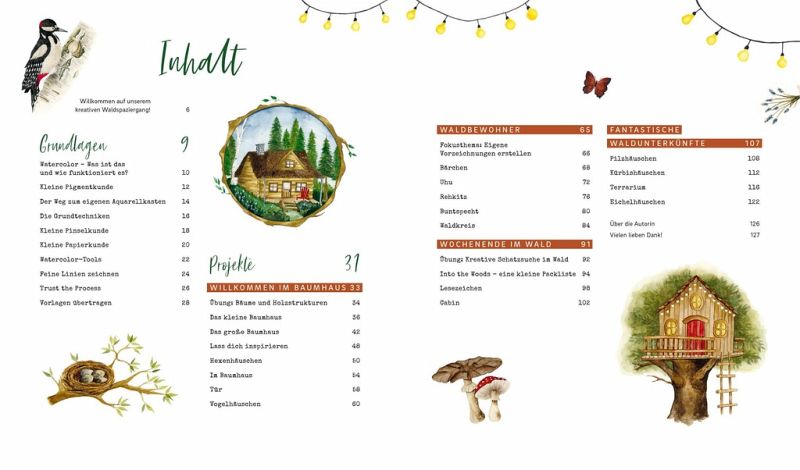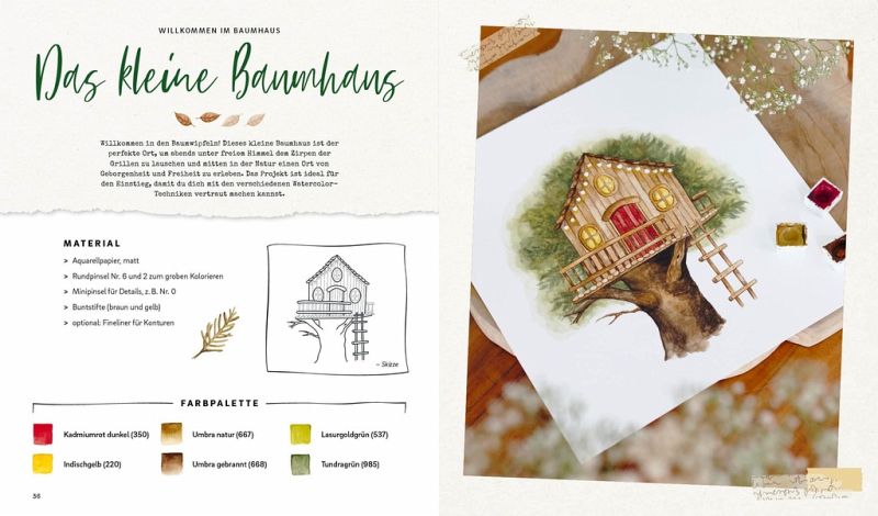 Kreativer Waldspaziergang mit Watercolor: Entdecke 20 zauberhafte Waldmotive und einzigartige Baumhäuser!