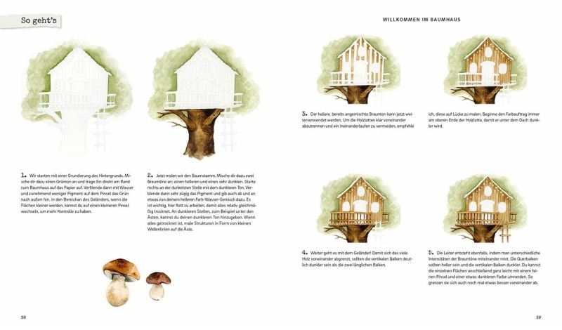 20 einzigartige MotiveFantasievolle Waldunterkünfte und ihre Bewohner einfach malen lernenAnschauliche Schritt-für-Schritt-AnleitungenIn vier Themenkapiteln wichtige Techniken kennenlernenFür Anfänger_innen und fortgeschrittene Watercolor-Künstler_innen