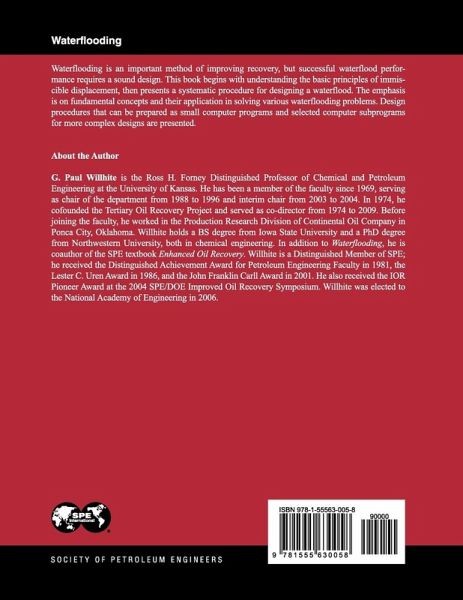 Waterflooding is an important method of improving recovery, but successful waterflood performance requires a sound design. Waterflooding begins with understanding the basic principles of immiscible displacement, then presents a systematic procedure for designing a waterflood. The emphasis is on fundamental concepts and their application in solving various waterflooding problems. Design procedures that can be prepared as small computer programs and selected computer subprograms for more complex designs are presented.