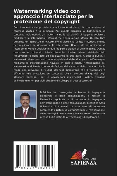 Con i recenti sviluppi della comunicazione wireless, la trasmissione di contenuti digitali è in aumento. Per quanto riguarda la distribuzione di contenuti multimediali, gli hacker hanno la possibilità di leggere, copiare e modificare le informazioni informatiche senza alcuno sforzo. Questo libro presenta un approccio di watermarking video che utilizza l'interlacciamento per migliorare la sicurezza e la robustezza. Uno strato di luminanza di fotogrammi viene suddiviso in due file pari e dispari di un'immagine. Questo processo è chiamato interlacciamento; inoltre, viene deinterlacciato rimuovendo le righe zero ed equalizzando le due parti. A questo punto, il watermark viene nascosto in una qualsiasi delle due parti dell'immagine mediante la trasformazione wavelet. In questo modo, l'informazione del watermark è richiesta con soddisfazione dal sistema visivo umano, che la rende non rilevabile. I risultati dei test dimostrano che il watermark è efficiente nella protezione dei contenuti, che si avvicina alla qualità degli standard necessari per le applicazioni multimediali. Inoltre, vengono delineate ulteriori possibili direzioni di sviluppo di queste tecniche.