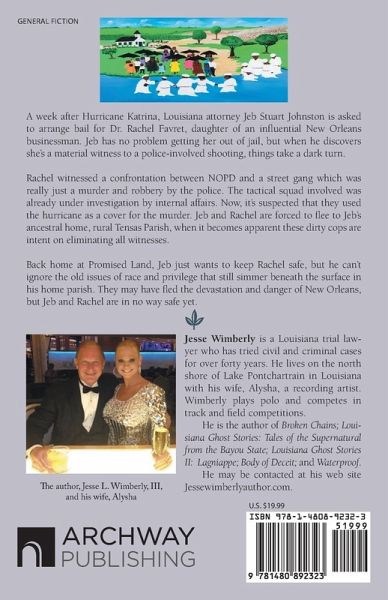 A week after Hurricane Katrina, Louisiana attorney Jeb Stuart Johnston is asked to arrange bail for Dr. Rachel Favret, daughter of an influential New Orleans businessman. Jeb has no problem getting her out of jail, but when he discovers she's a material witness to a police-involved shooting, things take a dark turn. Rachel witnessed a confrontation between NOPD and a street gang which was really just a murder and robbery by the police. The tactical squad involved was already under investigation by internal affairs. Now, it's suspected that they used the hurricane as a cover for the murder. Jeb and Rachel are forced to flee to Jeb's ancestral home, rural Tensas Parish, when it becomes apparent these dirty cops are intent on eliminating all witnesses. Back home at Promised Land, Jeb just wants to keep Rachel safe, but he can't ignore the old issues of race and privilege that still simmer beneath the surface in his home parish. They may have fled the devastation and danger of New Orleans, but Jeb and Rachel are in no way safe yet.