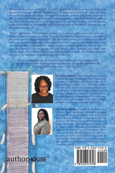 Do you feel like you are stuck in life? Are you longing to do a little more, but you are hesitant because of seemingly difficult circumstances? Do you long to hear God's voice, coaching you to launch out into the deep? Through biblical stories, personal reflections, and practical tips, Water's Edge challenges the reader to take a step into a God-direction life in order to live more authentically and maintain inner peace. In each day's reading, you will discover meditations bathed in scripture that will help bring clarity to the difficult decisions you are faced with everyday life. Water's Edge Volume 2 complements volume 1 to further support you in your quest for a deeper awareness of abundant living. It's perfect for individual devotions or as a foundation for prayer partners and group studies. This devotional invites you to leave the mundane shores of complacency and soak in the promises of God. Each day's devotional will prompt you to pray, reflect, make steps for change, or create a plan of action that you can apply to your circumstances. Take the plunge. Set aside time to reflect, recharge, and refresh. Step into the waters of possibilities. Wade out a little bit deeper into the sea of biblical promises and know that God is by your side every step of the way. "And as they that bare the ark were come unto Jordan, and the feet of the priests that bare the ark were dipped in the brim of the water, (for Jordan overfloweth all his banks all the time of harvest)" (Joshua 3:15).