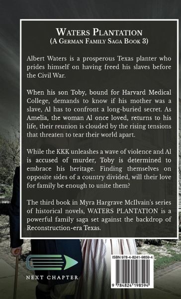 Albert Waters is a prosperous Texas planter who prides himself on having freed his slaves before the Civil War. When his son Toby, bound for Harvard Medical College, demands to know if his mother was a slave, Al has to confront a long-buried secret. As Amelia, the woman Al once loved, returns to his life, their reunion is clouded by the rising tensions that threaten to tear their world apart. While the KKK unleashes a wave of violence and Al is accused of murder, Toby is determined to embrace his heritage. Finding themselves on opposite sides of a country divided, will their love for family be enough to unite them? The third book in Myra Hargrave McIlvain's series of historical novels, WATERS PLANTATION is a powerful family saga set against the backdrop of Reconstruction-era Texas.