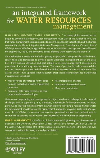An integrated framework for water resources management It has been said that "water is the next oil." A strong global consensus has begun to develop that effective water management must start at the watershed level, and that water management actions must be taken in the context of watersheds, and the human communities in them. Integrated Watershed Management: Principles and Practice, Second Edition presents a flexible, integrated framework for watershed management that addresses the biophysical, social, and economic issues affecting water resources and their use. Comprehensive in scope and multidisciplinary in approach, it equips readers with the necessary tools and techniques to develop sound watershed management policy and practice--from problem definition and goal setting to selecting management strategies and procedures for monitoring implementation. Ten years of practice have demonstrated that the core concepts presented in the first edition of this book remain true and important. This Second Edition is fully updated to reflect current practice and recent experience in watershed management, including: * New coverage of strategies for the selection and evaluation of public engagement processes * Sampling, data management, and computer simulation technologies * Recent legislative changes * International watershed issues * Many new case studies Water resources planning and management is not just a technical challenge; it is also a social challenge, and an opportunity. It is, ultimately, a framework for human societies to shape, protect, and improve the environment in which they live. Providing a rational framework for the development of water resources management strategies, Integrated Watershed Management, Second Edition is a one-stop resource for upper-level students and professionals in environmental science, natural resource management, and environmental engineering.