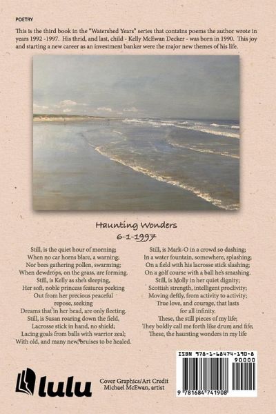 This is the third book in the "Watershed Years" series that contains poems the author wrote in years 1992 -1997. His thrid, and last, child - Kelly McEwan Decker - was born in 1990. This joy and starting a new career as an investment banker were the major new themes of his life.