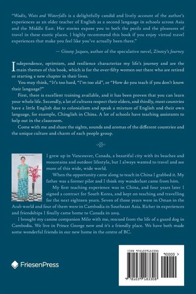 Independence, optimism, and resilience characterize my life's journey and are the main themes of this book, which is for the over-fifty women out there who are retired or starting a new chapter in their lives. You may think, "It's too hard, "I'm too old", or "How do you teach if you don't know their language?" First, there is excellent training available, and it has been proven that you can learn your whole life. Secondly, a lot of cultures respect their elders, and thirdly, most countries have a little English due to colonialism and speak a mixture of English and their own language, for example, Chinglish in China. A lot of schools have teaching assistants to help out in the classroom. Come with me and share the sights, sounds and aromas of the different countries and the unique culture and charm of each people group.