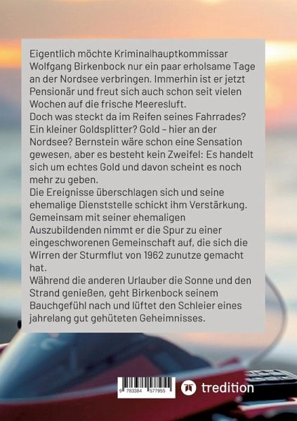Eigentlich möchte Kriminalhauptkommissar Wolfgang Birkenbock nur ein paar erholsame Tage an der Nordsee verbringen. Immerhin ist er jetzt Pensionär und freut sich auch schon seit vielen Wochen auf die frische Meeresluft.Doch was steckt da im Reifen seines Fahrrades? Ein kleiner Goldsplitter? Gold - hier an der Nordsee? Bernstein wäre schon eine Sensation gewesen, aber es besteht kein Zweifel: Es handelt sich um echtes Gold und davon scheint es noch mehr zu geben.Die Ereignisse überschlagen sich und seine ehemalige Dienststelle schickt ihm Verstärkung. Gemeinsam mit seiner ehemaligen Auszubildenden nimmt er die Spur zu einer eingeschworenen Gemeinschaft auf, die sich die Wirren der Sturmflut von 1962 zunutze gemacht hat. Und während die anderen Urlauber die Sonne und den Strand genießen, geht Birkenbock seinem Bauchgefühl nach und lüftet den Schleier eines jahrelang gut gehüteten Geheimnisses.