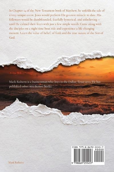 The miracle of Jesus walking on water is found in Matthew 14:22-34. The idea of a powerful person possessing the ability to walk on water was not original when the Gospels were written. It is usually presented in historical texts from earlier times in statements which recognize the act as being just impossible. Jesus, though, when He walked on the surface of the Sea of Galilee showed His power over nature as a divine attribute, and there were twelve witnesses. In chapter fourteen of the New Testament Book of Matthew, he unfolds the tale of a very unique event. Jesus would perform His greatest miracle to date, and they would be dumbfounded, fearfully hysterical, and unbelieving - until He calmed their fears with just a few simple words. Come along with the disciples in a night time boat ride and experience what they did. Learn the importance of faith, of belief, and the miracle performed by the Messiah. This book has been written to provide you as the reader a practical idea of the propensity of the event, and to learn more about the actors on this stage set in Israel two thousand years ago. The lessons Jesus taught the disciples, especially during the event under discussion, are still being taught today to those who would be called Christian, and as a way to provide one more evidential reason why non-Believers should put their trust in Jesus as Savior.