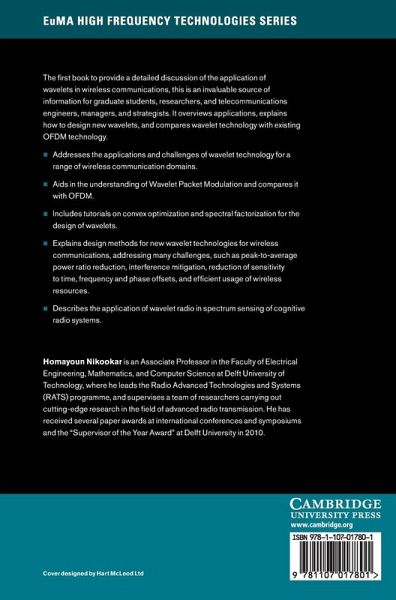 The first book to provide a detailed discussion of the application of wavelets in wireless communications, this is an invaluable source of information for graduate students, researchers, and telecommunications engineers, managers and strategists. It overviews applications, explains how to design new wavelets and compares wavelet technology with existing OFDM technology. ¿ Addresses the applications and challenges of wavelet technology for a range of wireless communication domains ¿ Aids in the understanding of Wavelet Packet Modulation and compares it with OFDM ¿ Includes tutorials on convex optimisation, spectral factorisation and the design of wavelets ¿ Explains design methods for new wavelet technologies for wireless communications, addressing many challenges, such as peak-to-average power ratio reduction, interference mitigation, reduction of sensitivity to time, frequency and phase offsets, and efficient usage of wireless resources ¿ Describes the application of wavelet radio in spectrum sensing of cognitive radio systems.