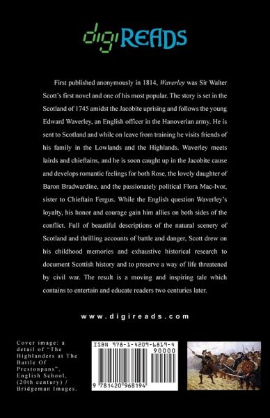 First published anonymously in 1814, "Waverley" was Sir Walter Scott’s first novel and one of his most popular. The story is set in the Scotland of 1745 amidst the Jacobite uprising and follows the young Edward Waverley, an English officer in the Hanoverian army. He is sent to Scotland and while on leave from training he visits friends of his family in the Lowlands and the Highlands. Waverley meets lairds and chieftains, and he is soon caught up in the Jacobite cause and develops romantic feelings for both Rose, the lovely daughter of Baron Bradwardine, and the passionately political Flora Mac-Ivor, sister to Chieftain Fergus. While the English question Waverley’s loyalty, his honor and courage gain him allies on both sides of the conflict. Full of beautiful descriptions of the natural scenery of Scotland and thrilling accounts of battle and danger, Scott drew on his childhood memories and exhaustive historical research to document Scottish history and to preserve a way of life threatened by civil war. The result is a moving and inspiring tale which contains to entertain and educate readers two centuries later. This edition is printed on premium acid-free paper.