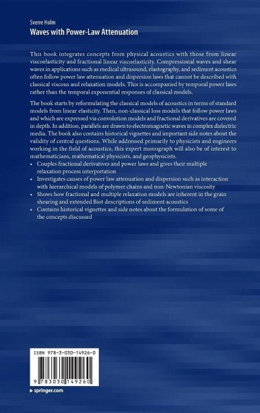 The book starts by reformulating the classical models of acoustics in terms of standard models from linear elasticity. Then, non-classical loss models that follow power laws and which are expressed via convolution models and fractional derivatives are covered in depth. In addition, parallels are drawn to electromagnetic waves in complex dielectric media. The book also contains historical vignettes and important side notes about the validity of central questions. While addressed primarily to physicists and engineers working in the field of acoustics, this expert monograph will also be of interest to mathematicians, mathematical physicists, and geophysicists.