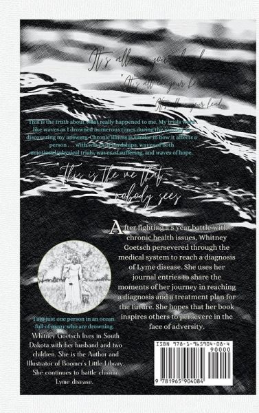 This is the truth about what really happened to me. My trials were like waves as I drowned numerous times during the journey in discovering my answers. Chronic illness is similar in how it affects a person . . . with waves of hardships, waves of both emotional/physical trials, waves of suffering, and waves of hope. After fighting a 5 year battle with chronic health issues, Whitney Goetsch persevered through the medical system to reach a diagnosis of Lyme disease. She uses her journal entries to share the moments of her journey in reaching a diagnosis and a treatment plan for the future. She hopes that her book inspires others to persevere in the face of adversity.