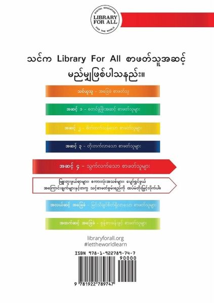Annie's ocean isn't perfect. Her great-grandmother remembers a time when the ocean was free of pollution. What can Annie do to help restore her ocean? မေပုလဲ ရဲ့ သမုဒ္ဒရာက ပြည့်စုံကောင်းမွန်ခြင်းမရှိပါဘူး။ သူမရဲ့ အဘွားက ဟိုတချိန်တုန်းက ညစ်ညမ်းမှုတွေမရှိတဲ့ သမုဒ္ဒရာကြီးကို သတိရမိနေတယ်။ မေပုလဲအနေနဲ့ သမုဒ္ဒရာကို ပြန်လည်ထိန်းသိမ်းဖို့ ဘာလုပ်နိုင်မလဲ။ Your purchase of this book supports Library For All in its mission to make knowledge available to all, equally.