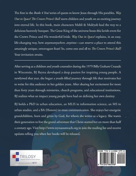 The first in the Books 4 You! series of quests to know Jesus through His parables, Way Out in Space! The Crown Prince's Ball starts children and youth on an exciting journey into eternal life. In this book, main characters Mahli & Malëyah lead the way to a delicious heavenly banquet. The Great King of the universe hosts this lavish event for the Crown Prince and His wonderful bride. Way Out in Space! explains, in an easy, life-changing way, how anyoneanywhere, anytime--can reserve a place to attend this amazingly unique, extravagant feast! So, come one and all to The Crown Prince's Ball! Your invitation awaits.